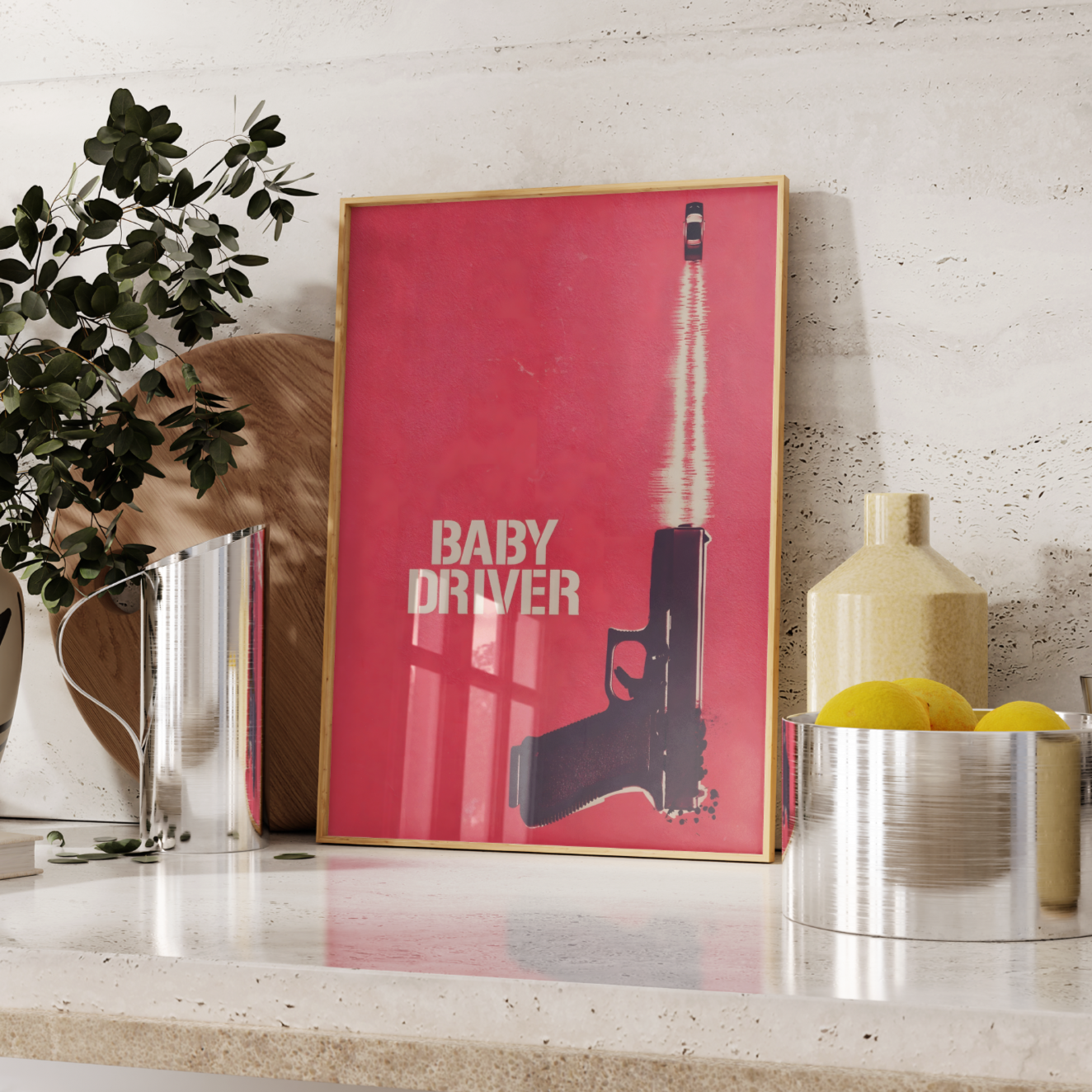 Add a blast of high-octane style to your space with this Retro Baby Driver movie poster. Inspired by Edgar Wright’s cult classic, this design captures the slick, vintage vibe of Baby Driver, blending retro aesthetics with the film’s unforgettable energy. Featuring bold colors and a throwback design, it’s perfect for fans of action-packed heist movies, music lovers, and collectors of iconic film art.