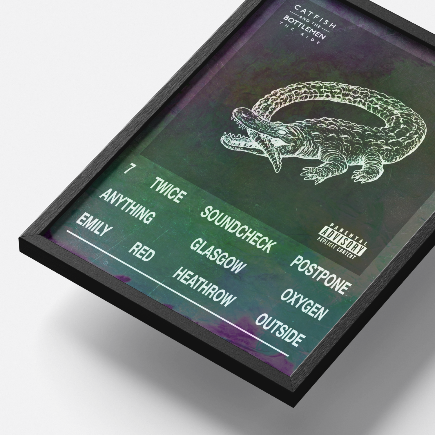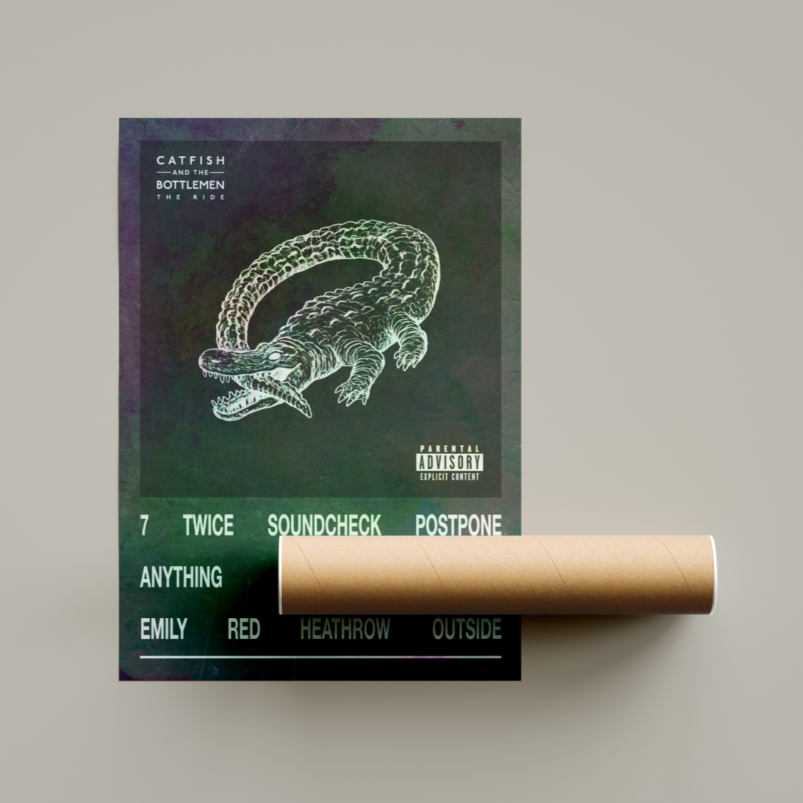 Bring modern indie rock energy to your space with this Catfish and the Bottlemen 'The Ride' Album Poster. Featuring the sleek, minimalist album artwork and full tracklist, this poster celebrates the anthemic sound that solidified the band’s place in the indie scene. From "7" to "Twice," every track captures the raw emotion and big choruses that fans love.