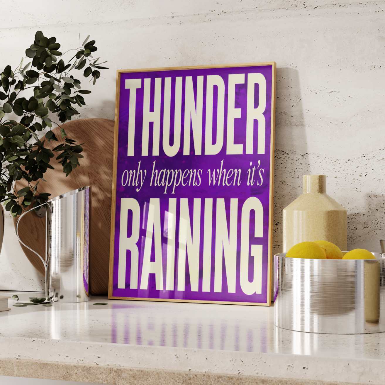Celebrate the timeless sound of Fleetwood Mac with this stylish lyrics poster featuring the iconic line “Thunder only happens when it’s raining.” Designed with bold, eye-catching typography, this poster is perfect for music lovers who want to add a touch of classic rock nostalgia to their space.