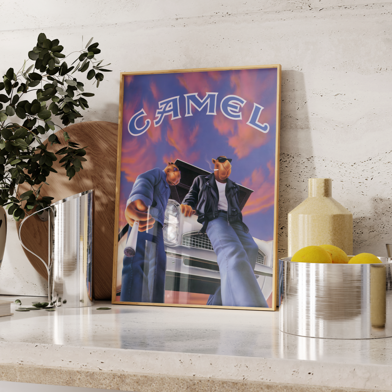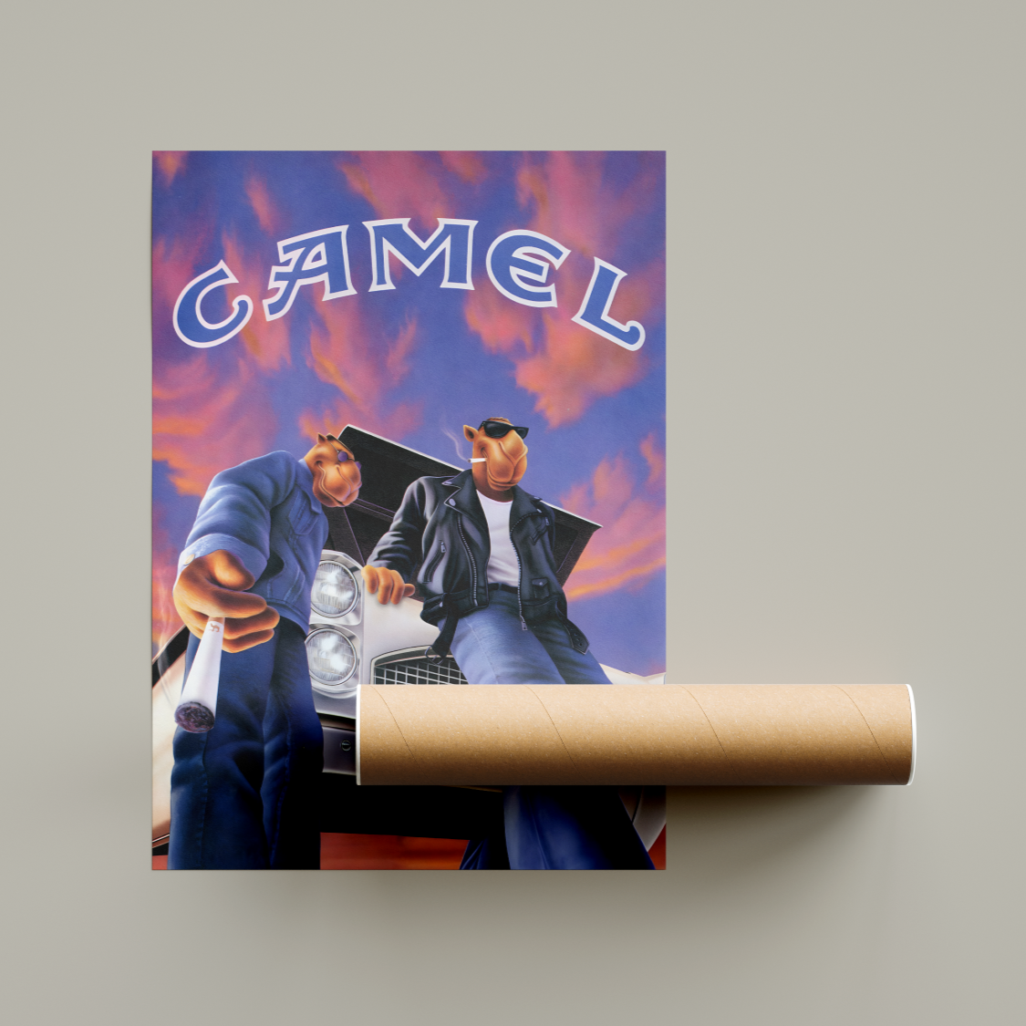 Bring bold nostalgia to your walls with this vintage Joe Camel poster. Featuring the iconic 90s mascot from Camel, this retro-style print is a striking throwback to classic advertising history.
