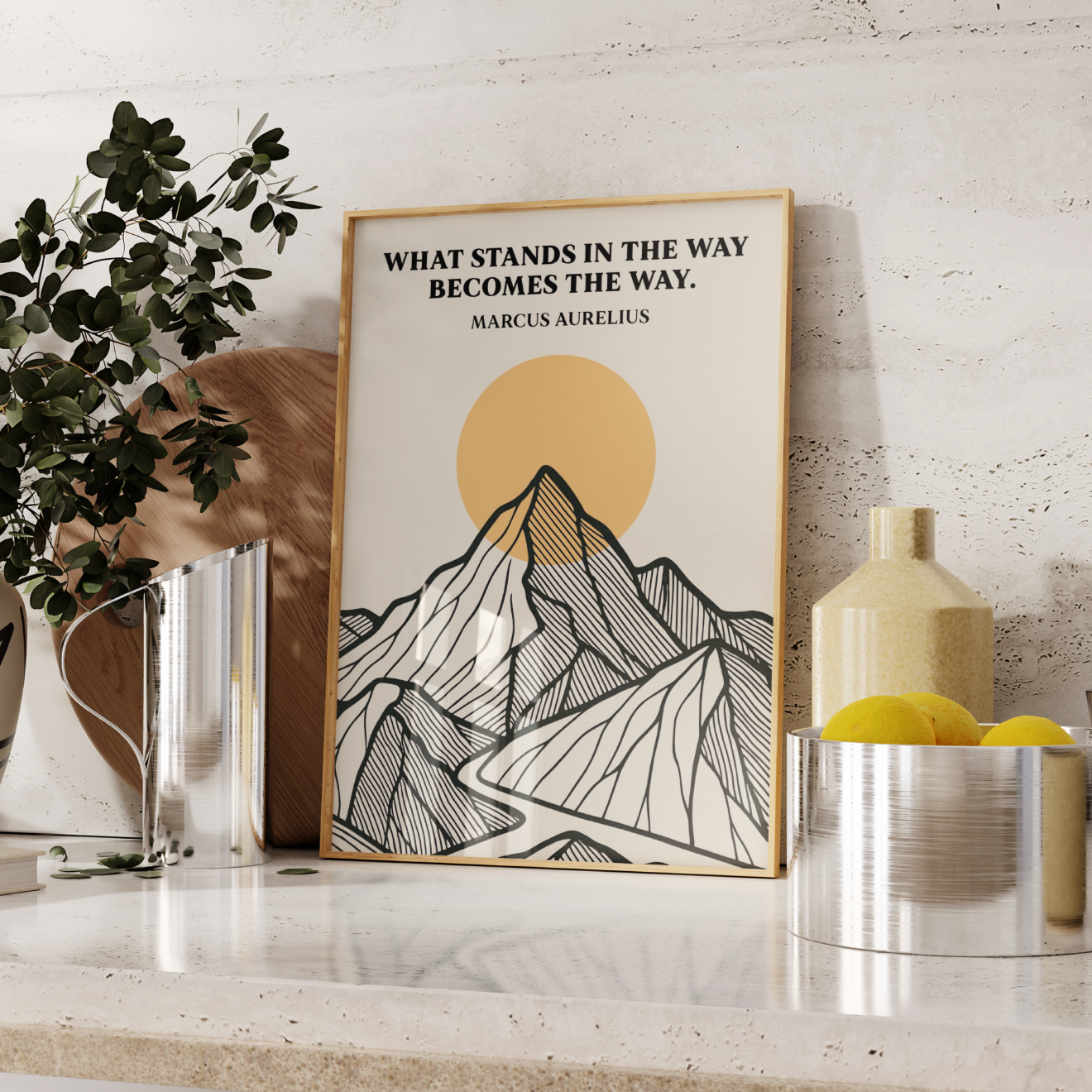 Inspire resilience and strength with this powerful Marcus Aurelius quote poster, featuring the timeless Stoic wisdom: “What stands in the way becomes the way.”