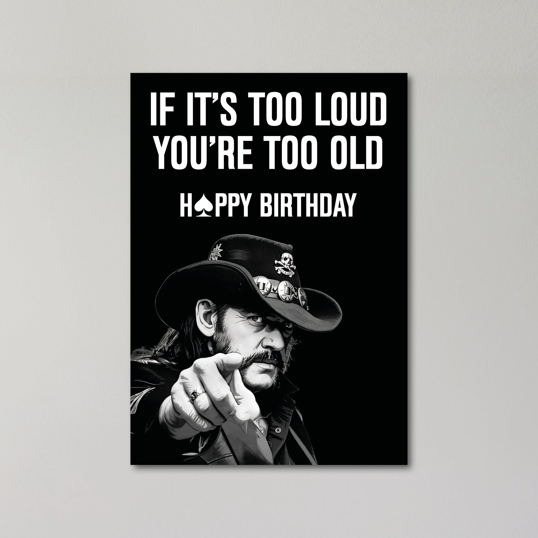 Turn the volume up on their special day with this Motörhead inspired birthday card, featuring the legendary Lemmy Kilmister and text: “If It’s Too Loud, You’re Too Old.” Perfect for fans of hard rock, heavy metal, and living life at full blast, this bold card is a fun and rebellious way to celebrate another year around the sun.