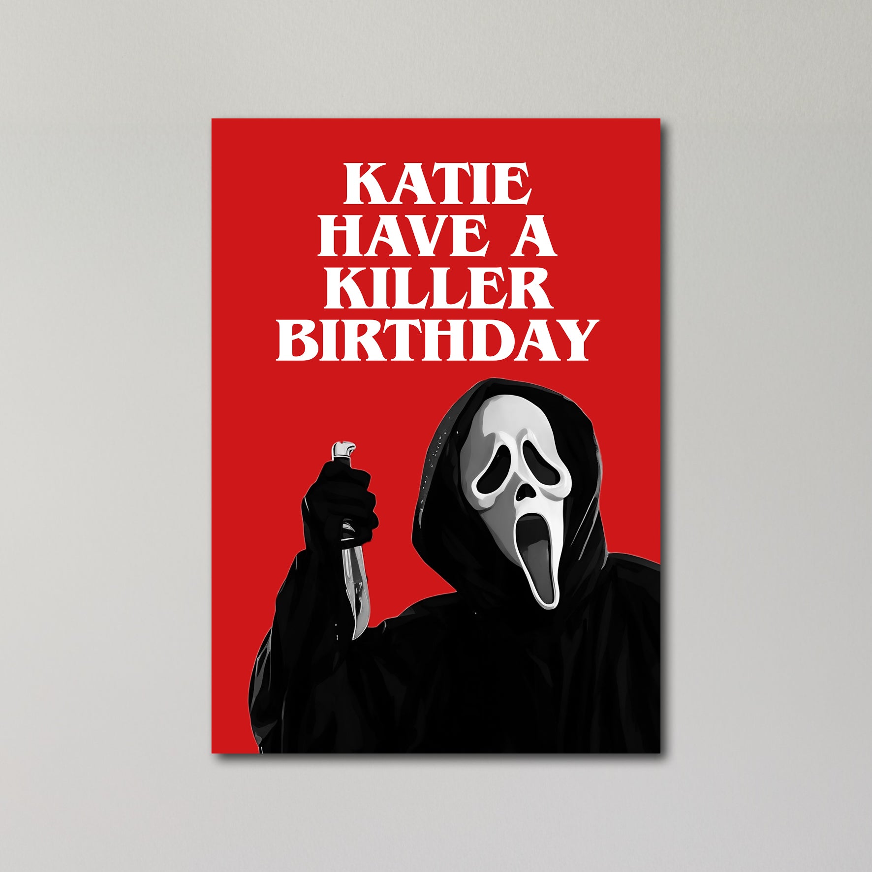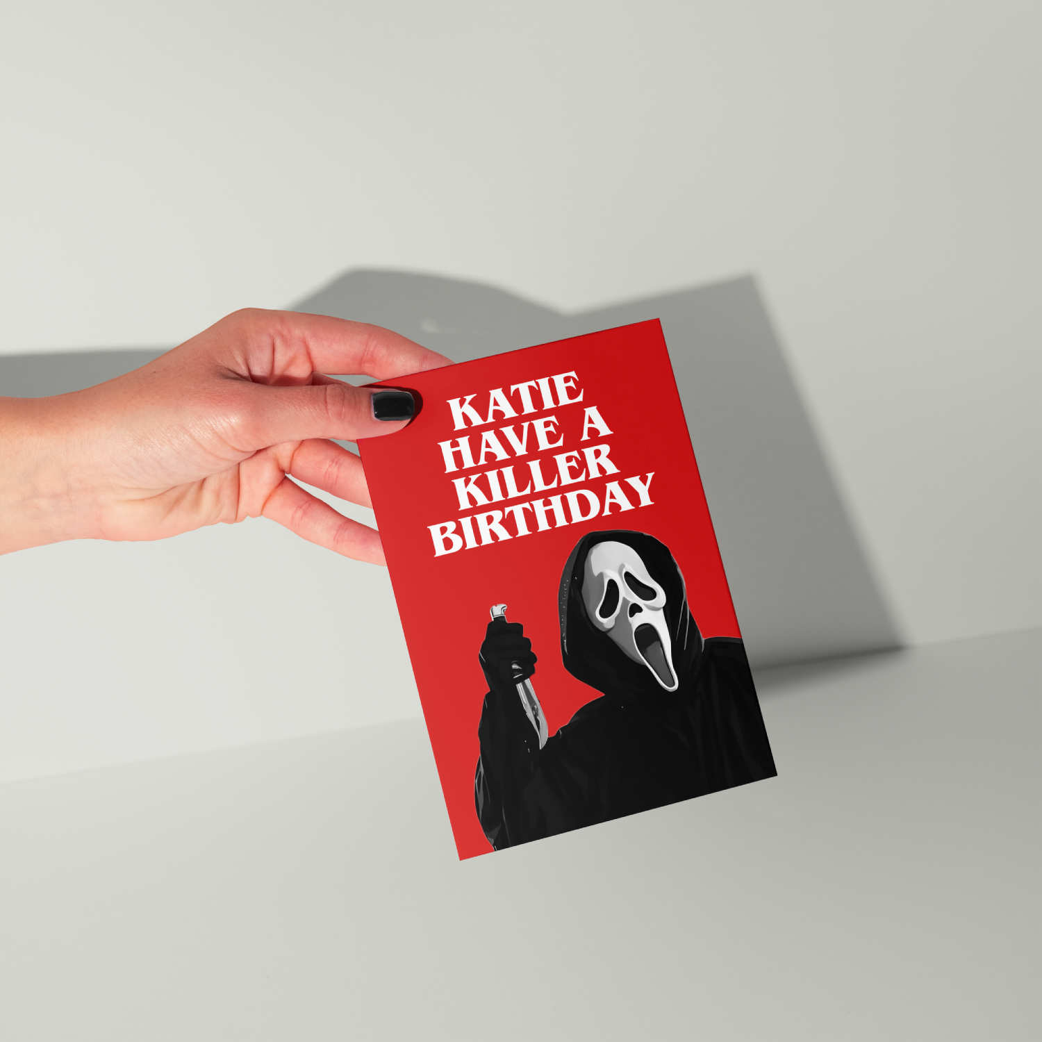 Make their birthday a scream with our Personalised "Have a Killer Birthday" Scream Card. This terrifyingly fun card features the iconic Ghostface in a menacing pose, ready to deliver a truly memorable message.
